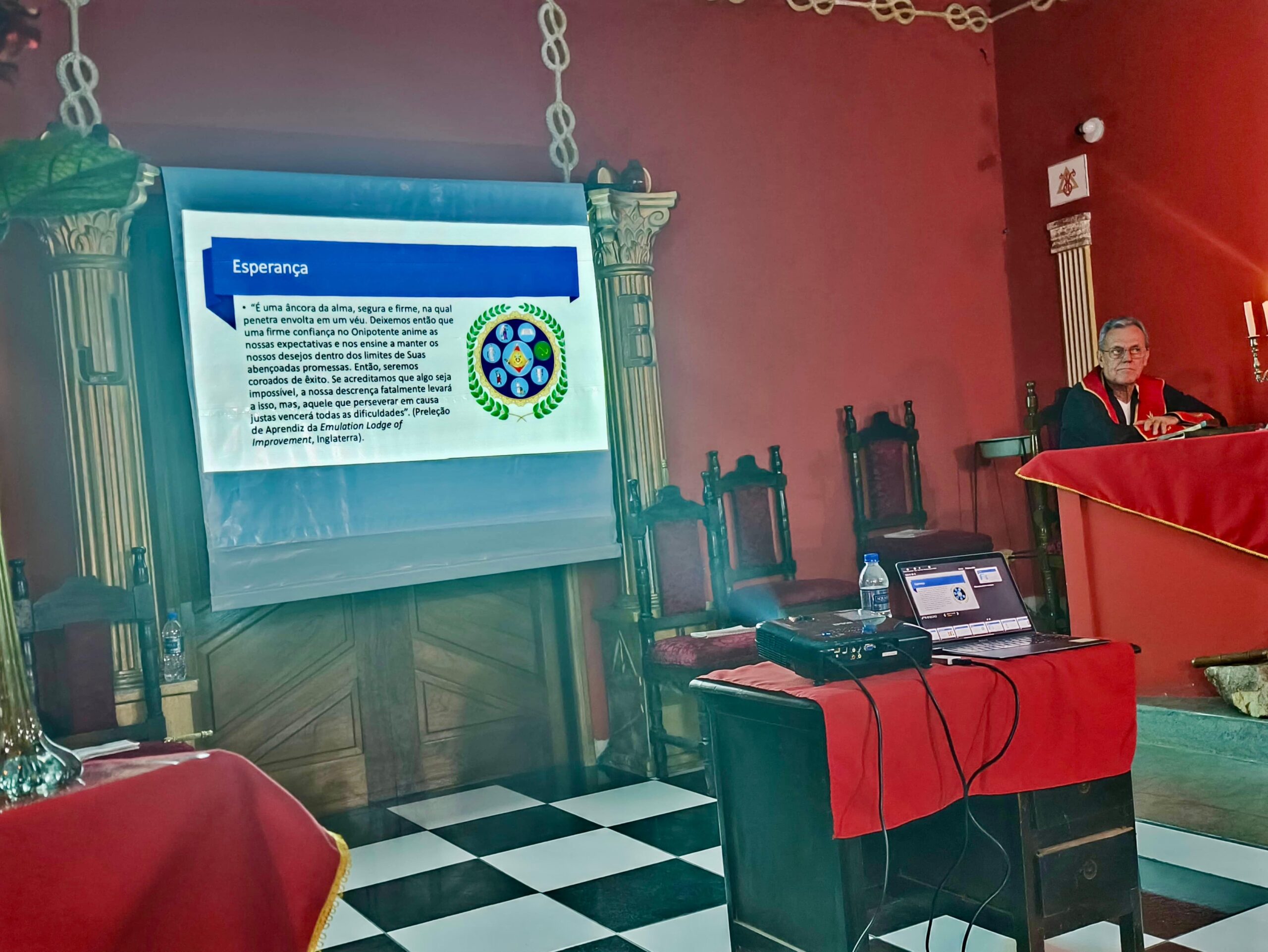 Já na capital, Campo Grande, na noite de 24 de setembro, o Ciclo de Palestras foi realizado com a participação das Lojas da 3ª Região, reunindo a A∴R∴L∴S∴ União e Fraternidade VI nº 6, A∴R∴L∴S∴ Obreiros do Oriente nº 17, A∴R∴L∴S∴ Luz e Verdade nº 14, A∴R∴L∴S∴ Expansão da Luz nº 35, A∴R∴L∴S∴ Luz do Oriente nº 20 e a A∴R∴L∴S∴ Astréa de Estudos e Pesquisas nº 38. O evento contou com a palestra “As Constituições de Anderson”, ministrada pelo Sereníssimo Ir∴ Thiago Ramos Dias, Grão-Mestre Adjunto do GOMS.