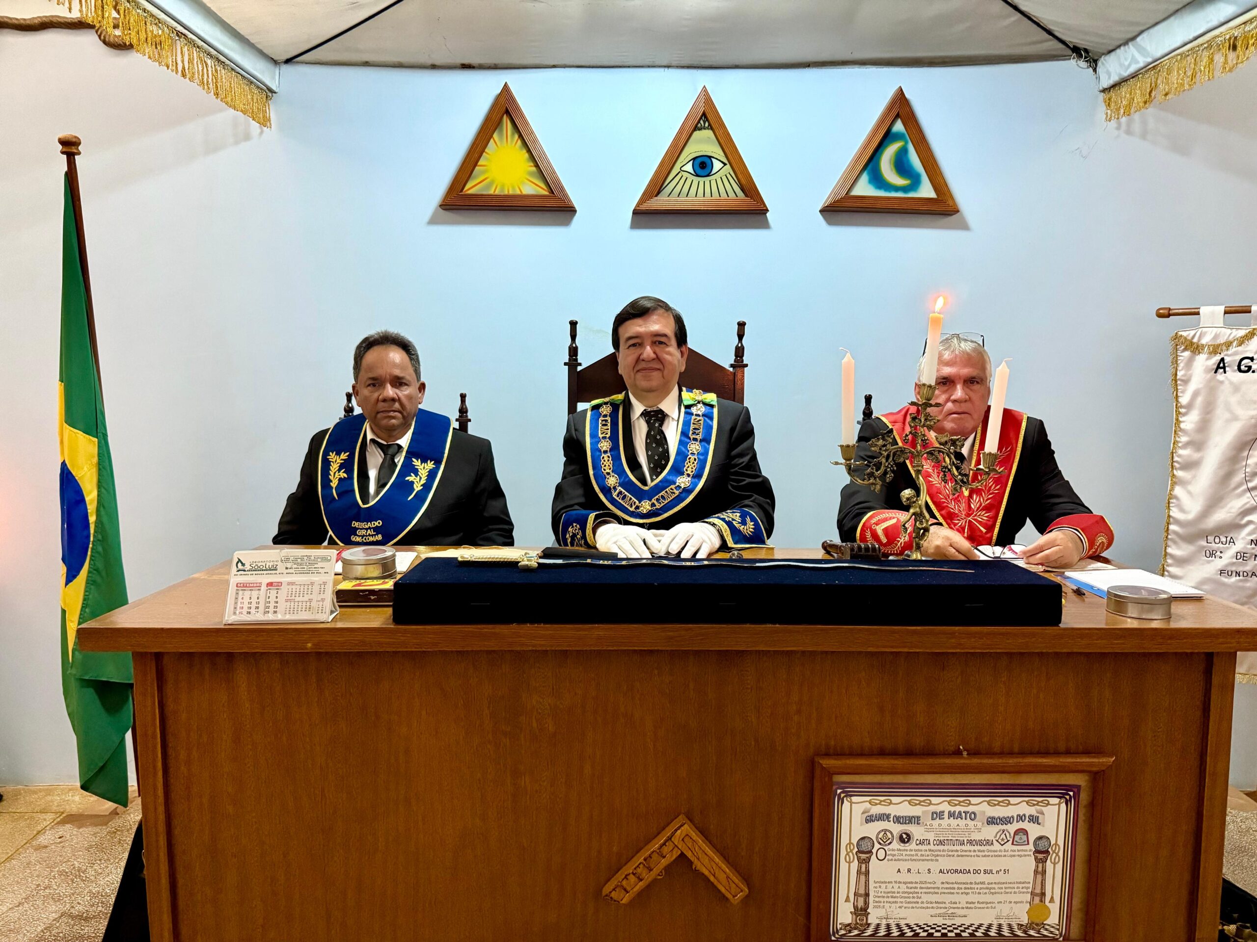 No último sábado, 15 de novembro de 2025, às 9 horas, a Augusta e Respeitável Loja Simbólica Nova Alvorada nº 51 realizou sua Primeira Sessão Ritualística, marcando um momento histórico para a jovem Oficina instalada no Oriente de Nova Alvorada/MS, sob a égide do Grande Oriente de Mato Grosso do Sul (GOMS).