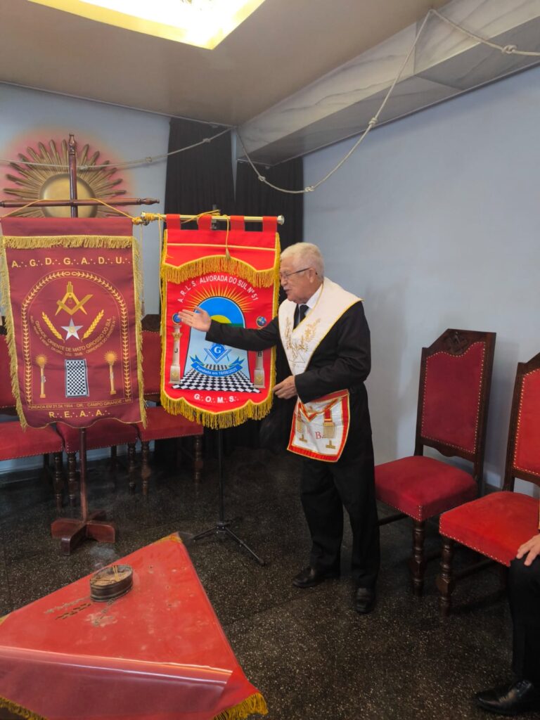 A cerimônia foi presidida pelo Soberano Irmão Bento Adriano Monteiro Duailibi, Grão-Mestre do GOMS, que conduziu os trabalhos com maestria, destacando a importância do estandarte como símbolo da identidade, da tradição e da força moral de cada Oficina. O ato representou não apenas a consagração dos símbolos, mas também a reafirmação dos princípios maçônicos que orientam as Lojas em sua trajetória: Liberdade, Igualdade e Fraternidade.